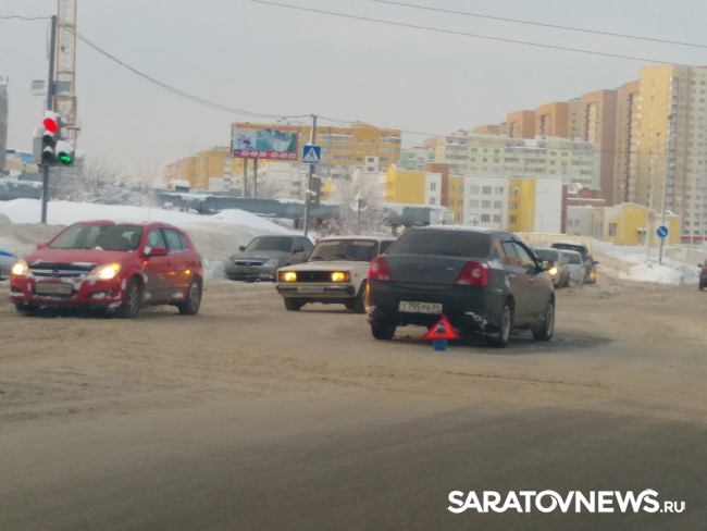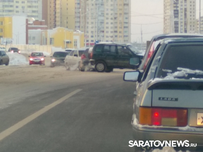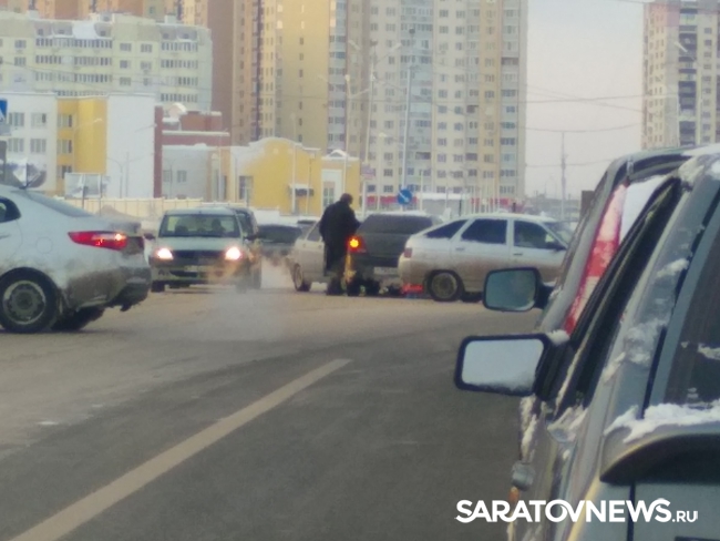 Примерно два часа назад на границе Ленинского и Кировского районов Саратова, недалеко от перекрестка улиц Топольчанской и Антонова столкнулись ВАЗ 2110 и "Шкода", передает корреспондент Saratovnews с места события. Машины на перекрестке съехались лоб в лоб и их водители не успели затормозить.