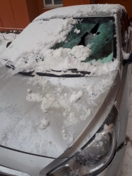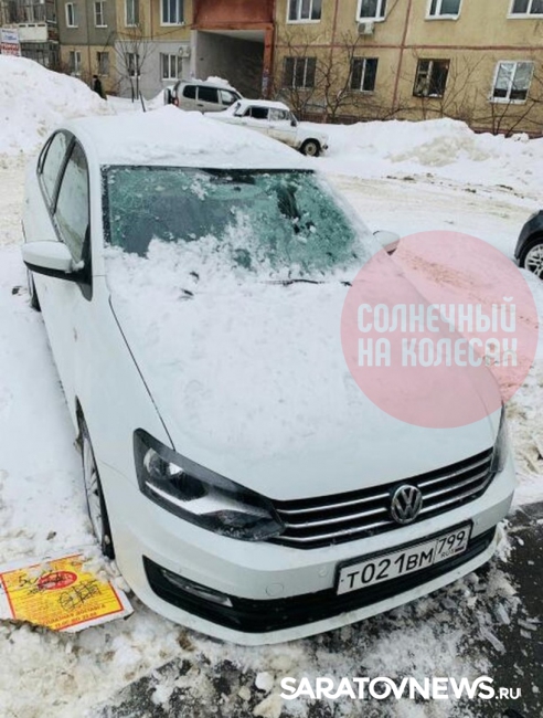 В Саратове десятки припаркованных возле домов машин разбиты сосульками, глыбами снега и льда, падающими с крыш домов. Только в поселке Солнечный за выходные произошло не меньше 10 таких инцидентов. Пользователи соцсетей распространяют фотографии с последствиями происшествий в соцсетях.