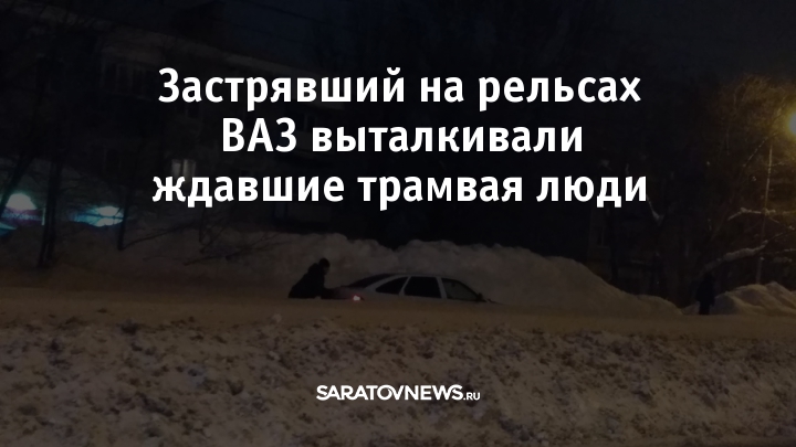 Водитель белого ВАЗ 2112, ехавший по рельсам в центр города, забуксовал буквально в нескольких метрах от остановки. Ждавшие трамвая пасажиры вдвоем растолкали машину.
