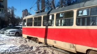 Только что на рельсах застрял очередной водитель, попытавшийся объехать затор по выделенной трамвайной линии. Инцидент произошел в Кировском районе Саратова, возле остановки "Поселок Мирный", сообщает корреспондент Saratownews.