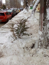 В ночь с 13 на 14 января в Саратове работники МУП «Городская служба благоустройства» вместе со снегом «убрали» молодые деревья можжевельника. Их посадили горожане на улице Соляная (пересечение с Октябрьской). Об этом Saratovnews рассказал Евгений Путятинский.