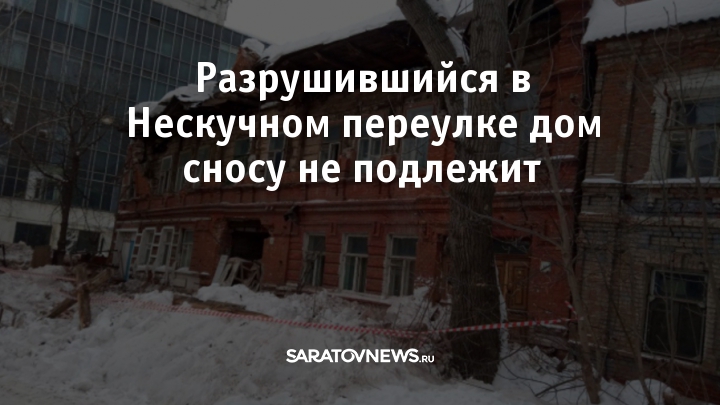 Двухэтажный аварийный дом №11в Нескучном переулке Саратова, в котором накануне обрушились часть кровли и фасада, не подлежит сносу. Он входит в реестр историко-культурного наследия. Об этом Saratovnews сообщили в администрации города.