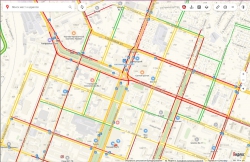 Практически стоят улица Чернышевского (от Новоузенской до Соколовой в одну сторону и от Радищева до Новоузенской в другую), Вольская (от Кутякова до Рабочей), улица Горького (от Рабочего переулка до улицы Дзержинского), улица Чапаева (в обе стороны от улицы Чернышевского до Соколовой), улица Рахова (от 1-й Садовой до Новоузенской и обратно), Астраханская (от Новоузенской до 1-й Садовой и обратно), Университетская (от улицы Степана Разина до Соколовой), улица Степана Разина (от улицы Кутякова до Новоузенской), Аткарская (от Московской до Рабочей), улица Емлютина (от Большой Садовой до Деловой), Большая Садовая (от Рабочей до Тракторной), улица Танкистов между Соколовой и 1-й Садовой и обратно).