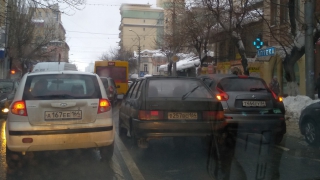 Вчера в Саратове зарегистрировали сотню подобных аварий. Из-за них в городе были десятибалльные пробки.