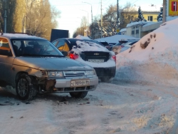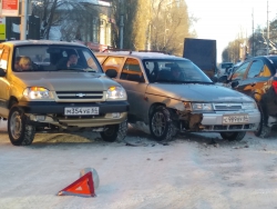 ВАЗ 2111 и "Нива Шевроле", притершиеся на улице Кутякова в Саратове, создали огромную пробку: скорость потока от улицы Горького до места аварии не превышает пяти километров в час.