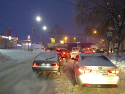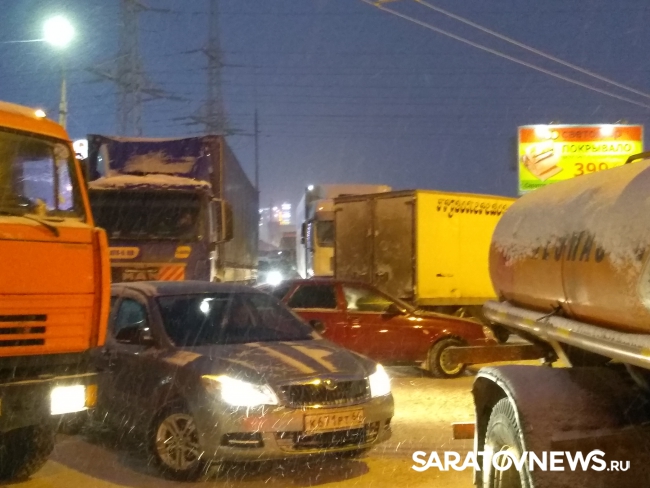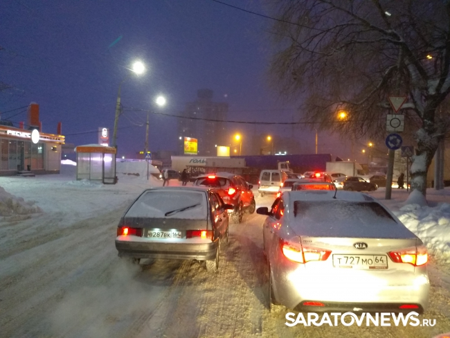 Затруднен проезд по Планерной улице. От площади Ленина и далее до Техстекла стоит улица Шехурдина. Со скоростью два километра в час ползет автомобильный поток по улице академика Антонова. Загружен проспект Строителей до "Хэппи Молла", а дальше стоит Вольский тракт. Серьезные пробки на примыкающих к ним Сокурском тракте и улице Тархова. На Елшанской улице пробка из-за забуксовавших фур.