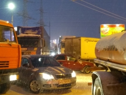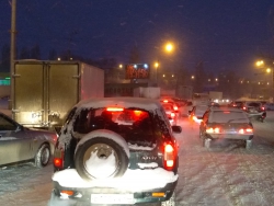 Сложная дорожная ситуация на мосту, который идет по улице Орджоникидзе и далее по Новоастраханскому шоссе. Стоит транспорт в сторону центра в районе поселка Юбилейный. Напомним, сегодня с 17:00 до 19:00 в Саратове также ожидается ливневый снег со скоростью выпадения осадков до 1 сантиметра в час.