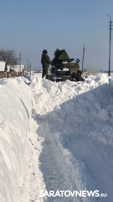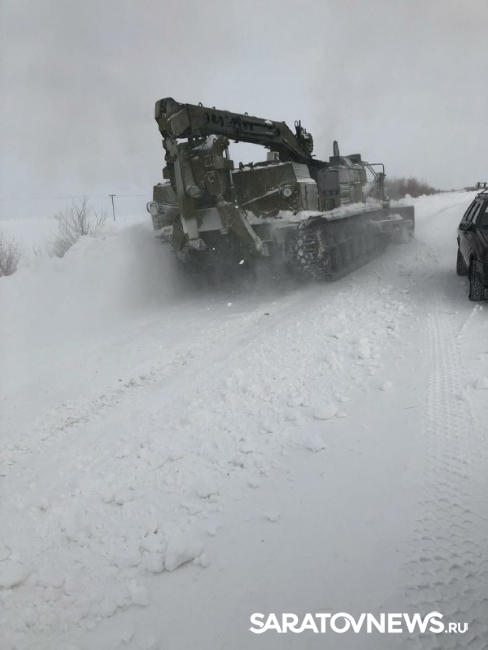 Как отметил командир воинского отряда Роман, их тягачи справятся даже с такими заносами, как в Саратовской области.