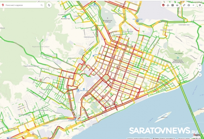 Как всегда, намертво встал автомобильный поток в самом центре Саратова на главных магистралях вроде Астраханской, Московской, улиц Чапаева, Рахова, Соколовой, Чернышевского. Здесь скорость потока не превышает пяти километров в час.