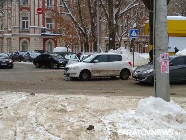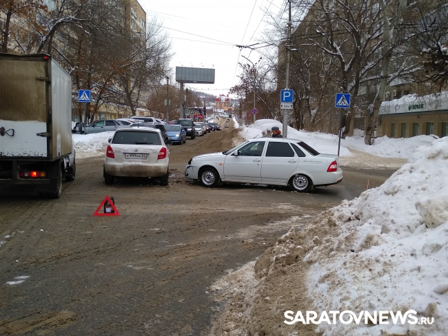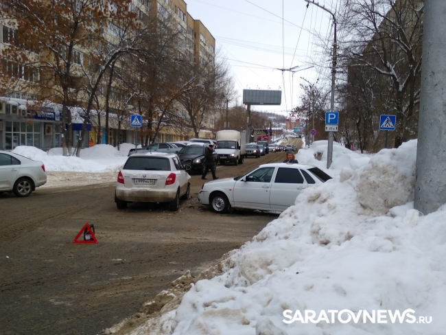 Судя по фотографиям, которые прислал в редакцию Saratovnews очеидец, "Лада" выезжала в улицы Челюскинцев и не пропустила "Шкоду". Сейчас перед местом происшествия - затор, который тянется от Октябрьской с одной стороны и занимает весь мост через Глебучев овраг с другой.