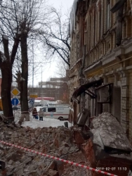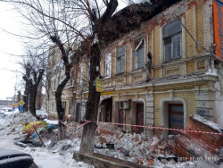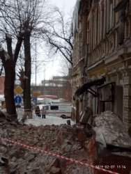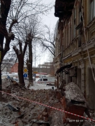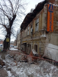 Напомним, чердачная кладка памятника культурного наследия "дом Деникина" на углу улиц Рабочей и Радищева рухнула примерно в 8:45. Предварительная причина - крыша не выдержала тяжести снега. По официальным данным, пострадавших нет.