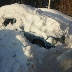 "Над моей тачкой вообще метра три ещё сугроба было. Больше половины откопал. Так что это ещё по божески