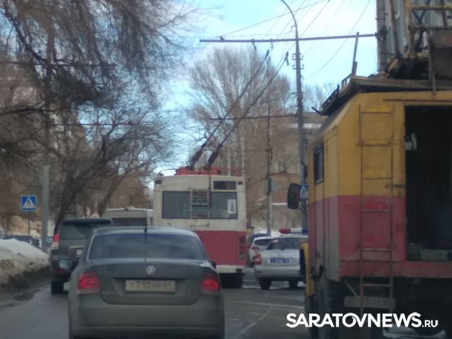 Авария приключилась недалеко от дома № 126 на улице Чернышевского. Сейчас на месте происшествия уже работает ремонтная бригада, рядом стоит экипаж ГИБДД. За местом обрыва скопилось несколько троллейбусов, они создали пробку на дороге - затор тянется от 2-й городской клинической больницы.