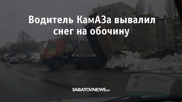 В Ленинском районе Саратова водитель КамАЗа вывалил собранный с улиц города снег прямо на обочину. Фотофакт опубликовали в соцсетях, автор снимка уверяет, что это произошло на улице Тархова, недалеко от Вольского тракта.