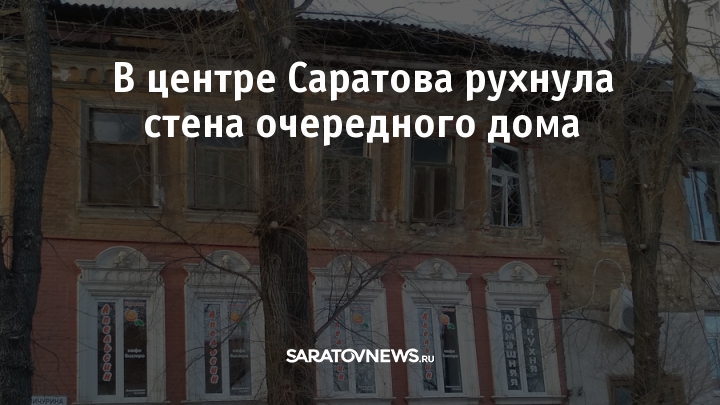 Только что в Саратове рухнула часть стены в старом трехэтажном доме № 109 на улице Мичурина. Об этом Saratovnews сообщил очевидец.