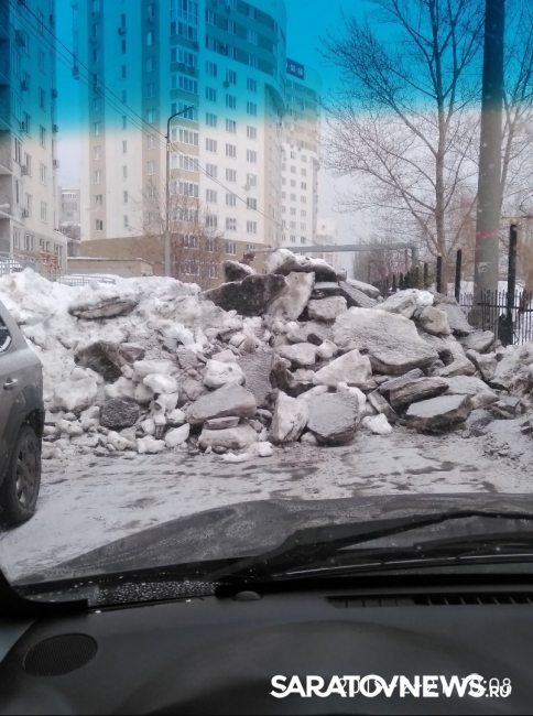 Проехать в настоящее время по улице Валовой у дома 2/10 в Саратове невозможно. На участке между улицей Лермонтова и набережной Космонавтов свалили сколотый с дороги снег. Фотофакт опубликовали в группе "Саратов онлайн" Вконтакте.