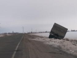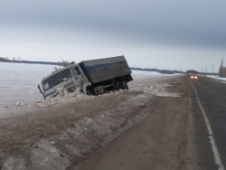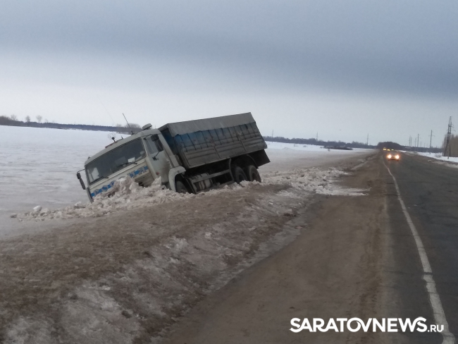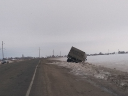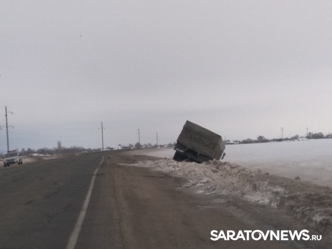 Сегодня в Марксовском районе Саратовской области в кювет улетела фура. КамАЗ сошел с дороги недалеко от села Орловское на трассе Самара - Энгельс - Волгоград.