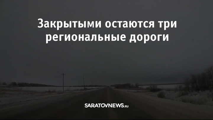 По данным на сегодняшнее утро остаются закрытыми три региональные автомобильные дороги в Дергачевском и Озинском районах. Расчищены трассы в Краснопартизанском и Новоузенского районах, сообщила пресс-служба министерства транспорта и дорожного хозяйства Саратовской области.
