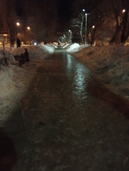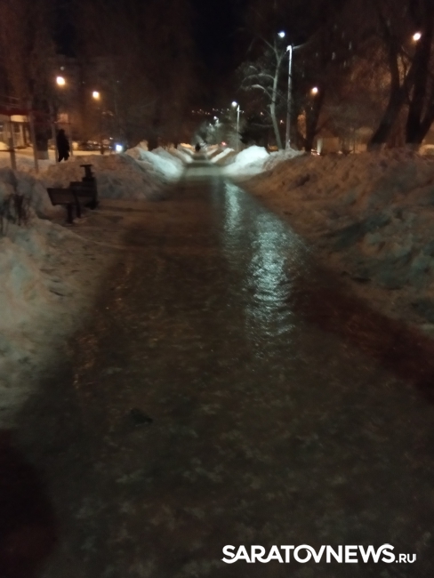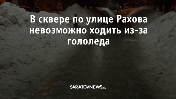 Жители Саратова пожаловались на состояние сквера на улице Рахова. Дорога покрыта льдом, передвигаться по обочинам также затруднительно. Об этом сообщил автор поста в "Саратов лайф" Вконтакте.