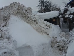 Приложенные к записи фотографии действительно производят жуткое впечатление: отвалы снега полностью перегородили не только выход из частного дома, местами они оказались выше крыши.