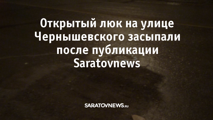 Открытый колодец на перекрестке улицы Чернышевского и 5-го Волжского проезда теперь не представляет опасности. Ночью с 5 на 6 марта провал засыпали, сообщила пресс-служба администрации Октябрьского района Саратова.