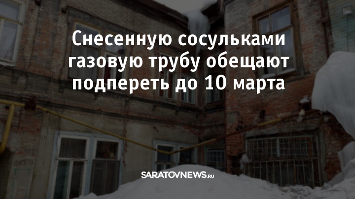 Чиновники назвали бандажем бинт, которым обмотали трубу, и сообщили: опоры под нее подведут до 10 марта. На месте повреждения работала бригада АО «Саратовгаз». О том, кто должен был чистить крышу дома и почему она обросла сосульками, в ответе умолчали.