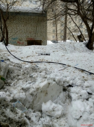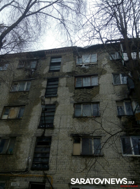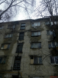 Снимки, сделанные с другой стороны дома, тоже впечатляют: стены дома промокли на площади в десятки квадратных метров, местами кладка разрушилась, на земле валяются выпавшие из нее кирпичи. Дом производит впечатление наполовину нежилого: окна первого этажа заварены металлическими решетками, некоторые балконы забиты фанерой и досками, однако кое-где видны занавески.