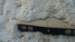 В Саратове на улице Сакко и Ванцетти рядом с Вольской автомобиль буквально «спрятался» под большими сугробами. Видна лишь одна передняя фара. Фотографию оттаявшей машины опубликовали ВКонтакте.