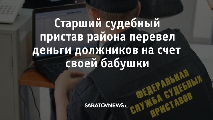 Экс-начальника отдела судебных приставов РОСП Татищевского района приговорили к штрафу в 200 тысяч рублей по уголовному делу за присвоение чужих денег. Он перевел поступившие от должников 262 тысячи рублей на карту своей бабушки. Об этом сообщила пресс-служба прокуратуры Саратовской области.