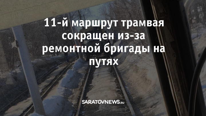 Сегодня в 10.20 пришлось сократить маршрут трамвая № 11. Около остановки "Стадион "Авангард" на путях, ведущих в сторону Мирного переулка, работает ремонтная бригада. Информация об этом появилась в группе «Трамваи и троллейбусы Саратова» ВКонтакте.