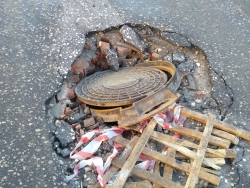 В Саратове возле дома № 206 "А" на улице Крайней вокруг покосившегося люка проваливается асфальт. Дорожное покрытие осыпалось примерно на двух квадратных метрах. О проблеме с места происшествия сообщил корреспондент Saratovnews.