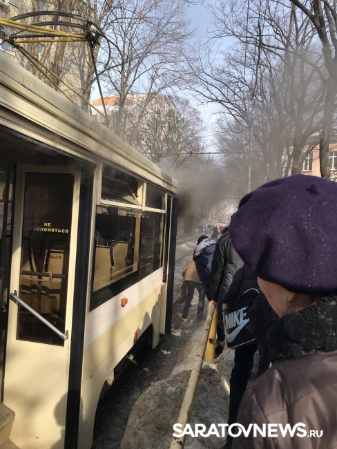 Сегодня, 15 марта, около 11:20 в Саратове недалеко от остановки "Стрелка" в Кировском районе города сгорел трамвай.