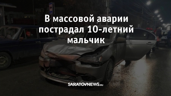 Вчера в 21:00 на пересечении улиц Чернышевского и Большой Горной произошло массовое ДТП с пятью автомобилями. Травмы в нем получил 10-летний мальчик, сообщила пресс-служба УГИБДД по Саратовской области.
