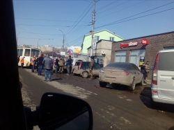 Трамвай, шедший в сторону 6-го квартала, сошел с рельсов, его вагон развернуло и впечатало задней частью в припаркованные на обочине автомобили. Судя по опубликованным ВКонтакте фотографиям, разбиты «Опель», «Форд» и ВАЗ 2107