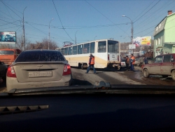Сегодня, 20 марта около 14:10, на улице Танкистов у дома №55 "А" произошло ДТП с участием вагона трамвайного маршрута №11 и трех автомобилей. Пострадавших нет, на месте работали сотрудники ГИБДД.