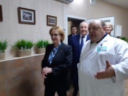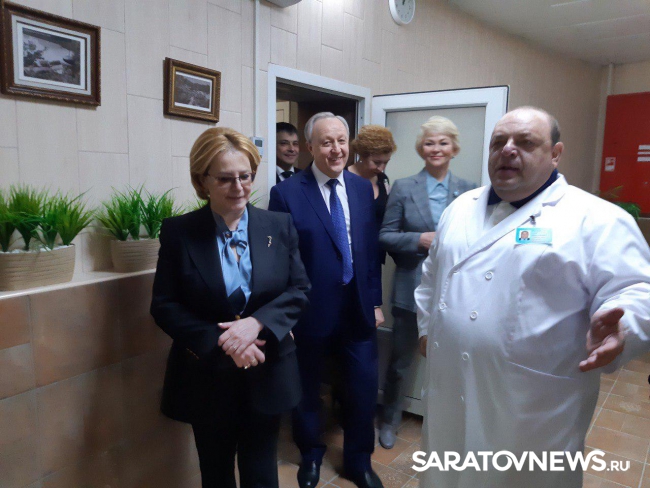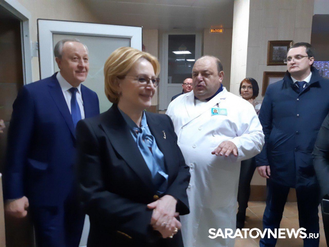 Министр здравоохранения РФ Вероника Скворцова сейчас посещает бальнеологическую больницу "Серные воды" в Саратове. Это произошло сегодня, во время деловой поездки министра в регион. Министра сопровождает губернатор Саратовской области Валерий Радаев.