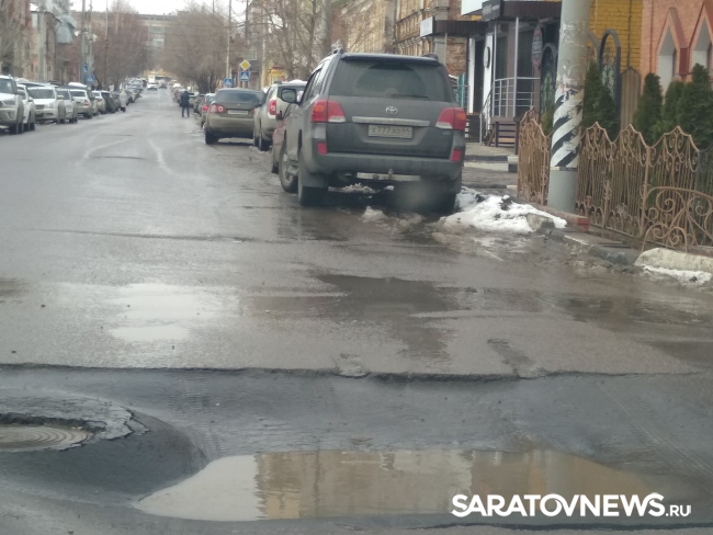 В центре Саратова, на перекрестке улиц Челюскинцев и Октябрьской просел довольно большой кусок асфальта. Фотографии с опасного места сделал корреспондент Saratovnews.