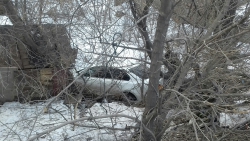 Сегодня около 8:20 на улице Танкистов (пересечение с Магнитным проездом) столкнулись "Лада Приора" и "Фольксваген". Иномарка после столкновения улетела в овраг.