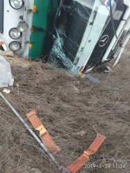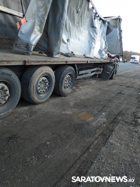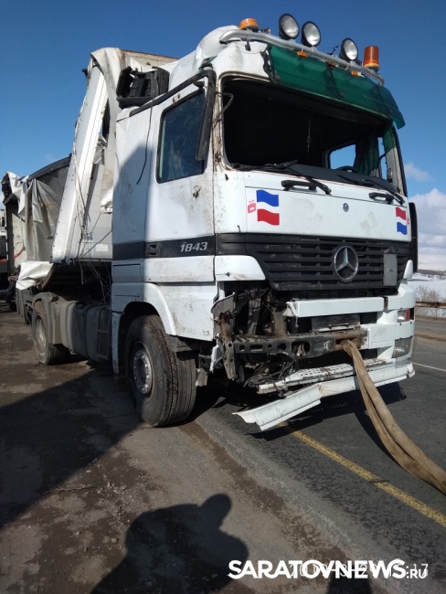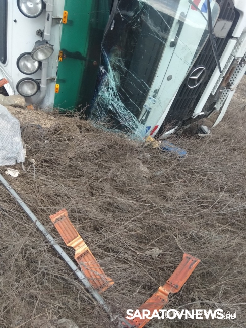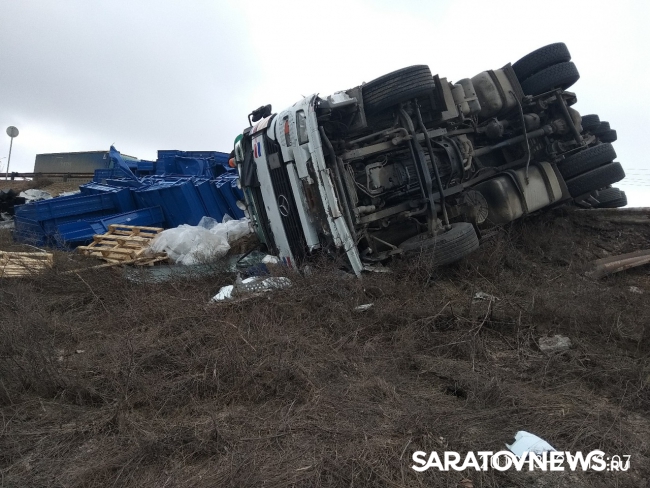 По данным саратовца, перевернулась фура "Мерседес Акрос". Машину вытащили. Водитель ждёт другую фуру, чтобы перегрузить в неё то, что он вез. Судя по снимкам с места происшествия, в фургоне была тара - ящики и палеты.