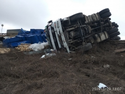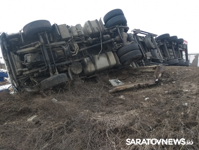 Водитель перевернувшейся вчера в Саратовском районе фуры остался ночевать возле разбитой машины. Об этом во ВКонтакте рассказал анонимный пользователь, который проезжал мимо и остановился, чтобы узнать, не нужна ли помощь.