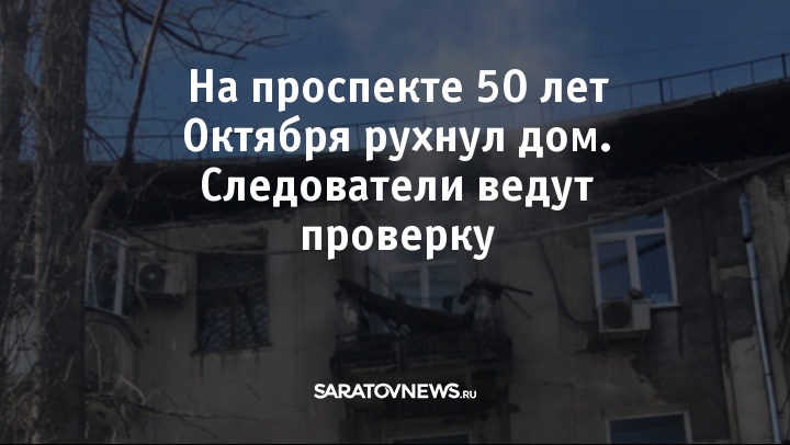 Следователи отдела по Ленинскому району Саратова СУ СК по Саратовской области начали проверку после того, как рухнула часть крыши и стены четырехэтажного дома на проспекте 50 лет Октября. Об этом сообщила пресс-служба управления.