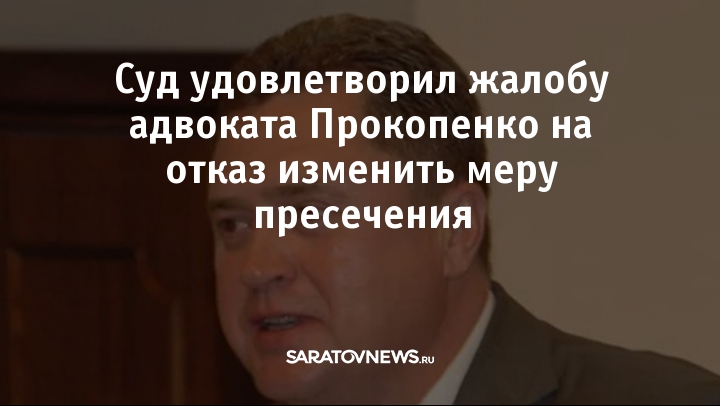 Сегодня суд Октябрьского района города Саратова рассматривал жалобу адвоката бывшего главы городской администрации города Алексея Прокопенко на отказ изменить меру пресечения своему подзащитному. Адвокат обосновал свою жалобу тем, что в протоколе были допущены грубые ошибки. Суд жалобу удовлетворил и обязал следователей устранить эти ошибки, а до этого времени адвокат может вновь подать прошение о том, чтобы его подопечного освободили из-под стражи. Об этом Saratovnews сообщила пресс-служба Октябрьского районного суда Саратова.