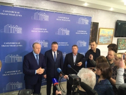 Председателем Саратовской областной думы избран Александр Романов, которого выдвинула фракция "Единой России". Результаты голосования только что оглашены, Романов занял место в президиуме рядом с зампредом думы Ольгой Болякиной.