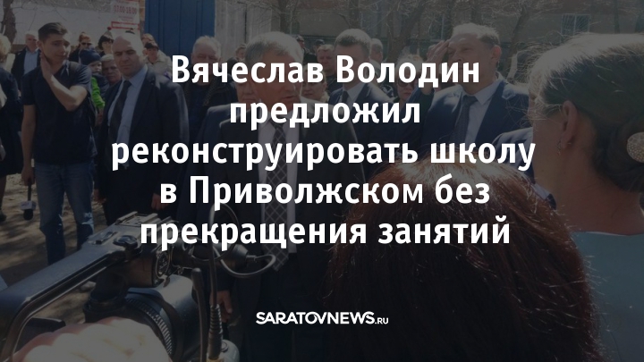 Председатель Госдумы РФ Вячеслав Володин предложил реконструировать школу в поселке Приволжский Энгельсского района таким образом, чтобы в старых зданиях не пришлось прерывать уроки. Сегодня он изучал проблему на месте.