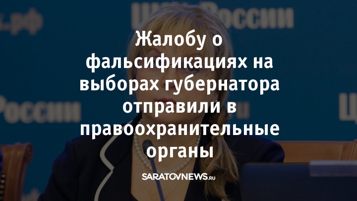 Жалобу саратовчанки Инны Дозоровой на фальсификации во время выборов губернатора Саратовской области направили в правоохранительные органы. Об этом на заседании Центральной избирательной комиссии сообщила ее председатель Элла Памфилова.
