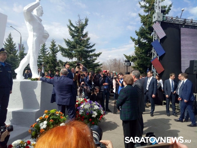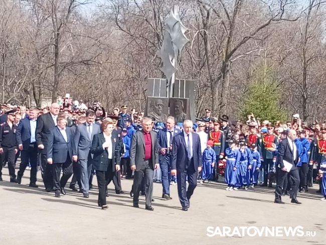 Терешкова, Володин и Радаев возложили цветы к памятнику Гагарину и поздравили жителей региона с Днем космонавтики.