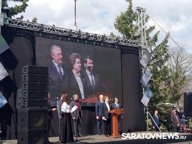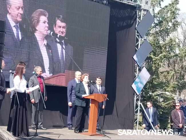 Сегодня, 12 апреля, место приземления первого космонавта Юрия Гагарина в Энгельсском районе, где 12 апреля традиционно проходит большая праздничная программа, посетили председатель Госдумы Вячеслав Володин, первая в мире женщина-космонавт Валентина Терешкова, депутаты разных уровней, губернатор Саратовской области Валерий Радаев, общественники.