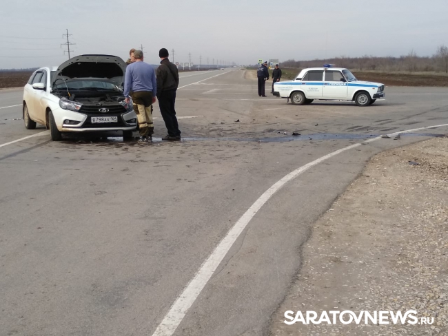 Несколько часов назад на трассе Энгельс - Балаково столкнулись "Лада X-Ray" и "Тойота Королла", об этом с места происшествия сообщил корреспондент Saratovnews.