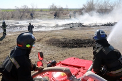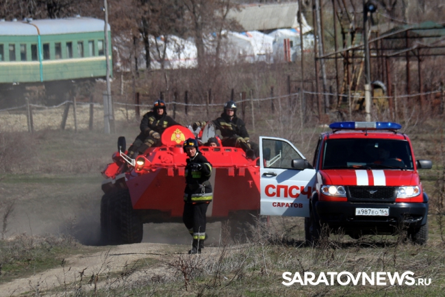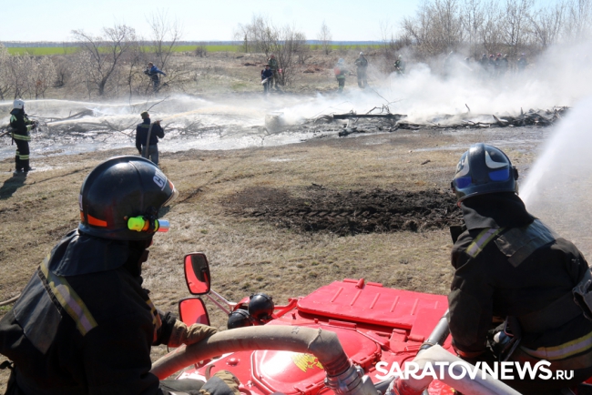 Сегодня в Татищевском районе состоялся заключительный этап Всероссийского командно-штабных учений МЧС. Пожарные службы ликвидировали огонь в лесной местности у детского лагеря.