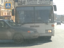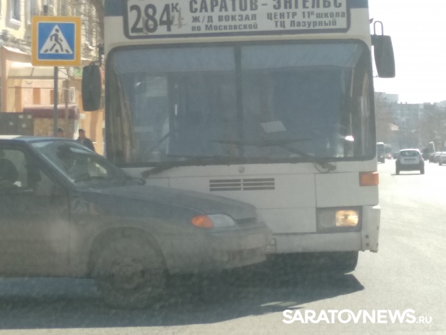 "Четырнадцатая" влетела под автобус в центре Саратова